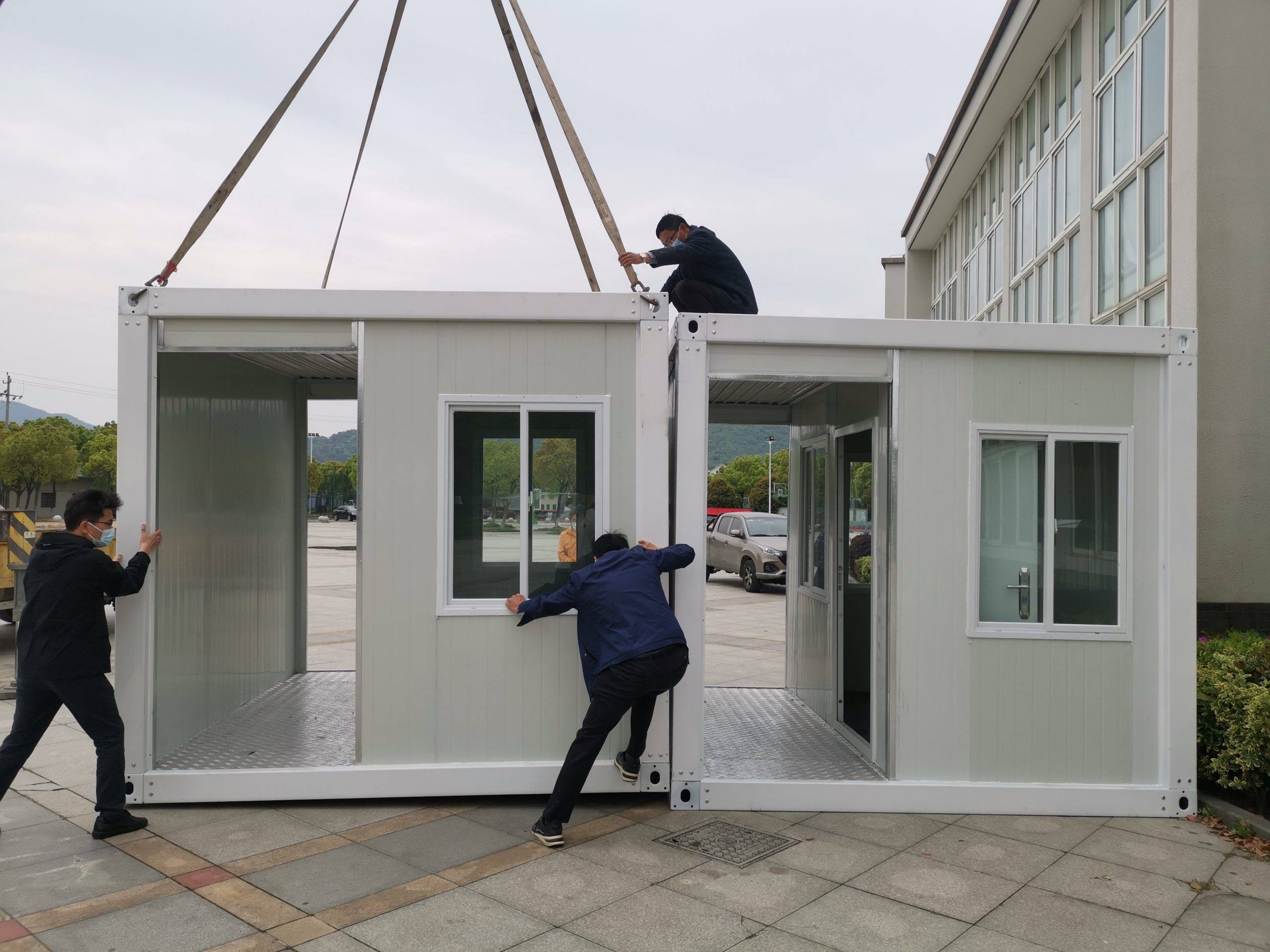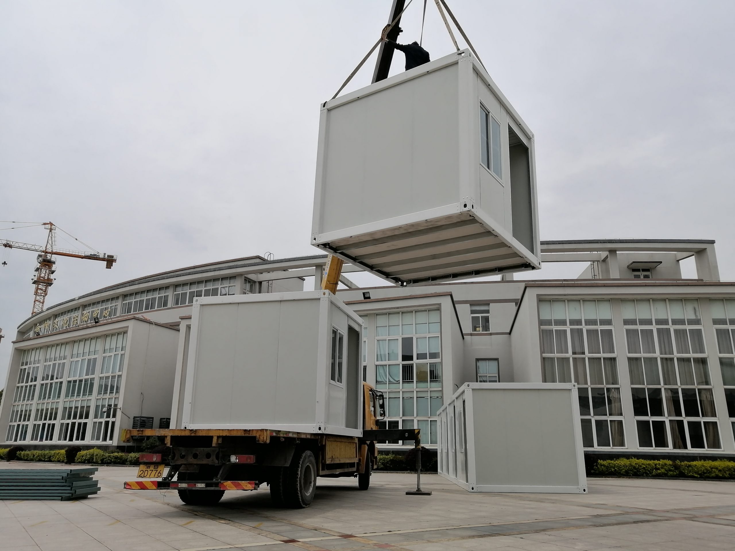 ? ? ? 任務(wù)擬定好后第五分公司連夜設(shè)計制作核酸采樣移動工作站,考慮到露天采樣、雨天地滑,制作時在底部采用了鋁紋防水防滑板,不容易腐蝕;整體墻面采用了防火隔熱的巖棉夾心板,利于夏日采樣;通道頂部還留了小面積白板,用于掛“采樣通道”led顯示標識牌。為了早日投入使用,制作人員加班加點歷時28個小時終于完成了8個9平方的核酸采樣移動工作站的定制工作,為疫情防控工作略盡綿薄之力。有了這個核酸采樣移動工作站,醫(yī)護人員在室內(nèi)即可完成受檢人員的拭子采樣操作,再也不用擔心天氣變化,風吹日曬了。
