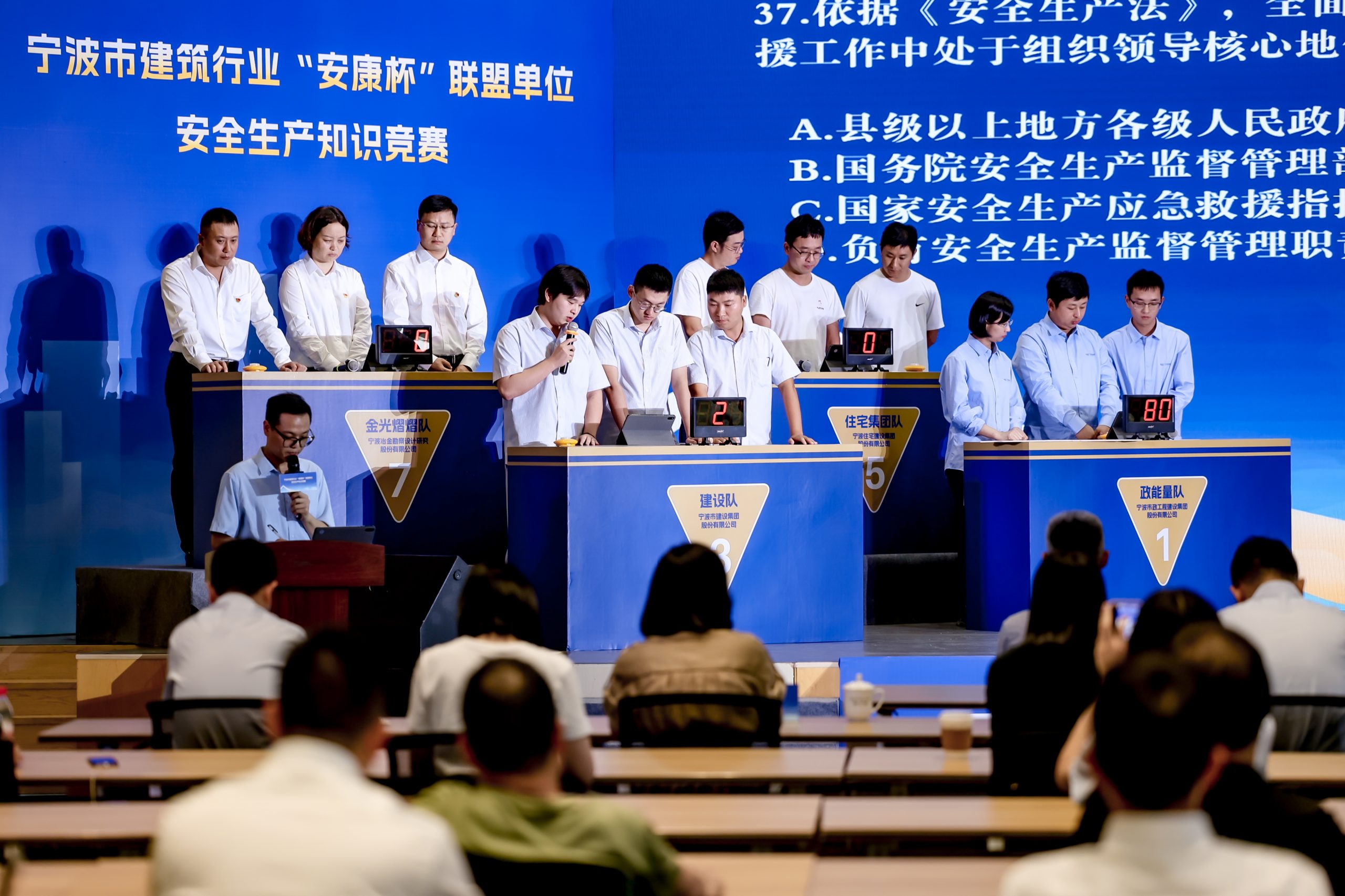 ? ? ? ?參與此次競賽的8支代表隊(duì)由市建筑行業(yè)“安康杯”聯(lián)盟單位組成,比賽圍繞安全相關(guān)法規(guī)標(biāo)準(zhǔn)、安全生產(chǎn)應(yīng)知應(yīng)會、應(yīng)急處置、黨史知識等多個方面,設(shè)置有必答題、搶答題、挑戰(zhàn)題三類題型,題目靈活,重點(diǎn)突出,全方位考察選手們的安全生產(chǎn)理論水平。