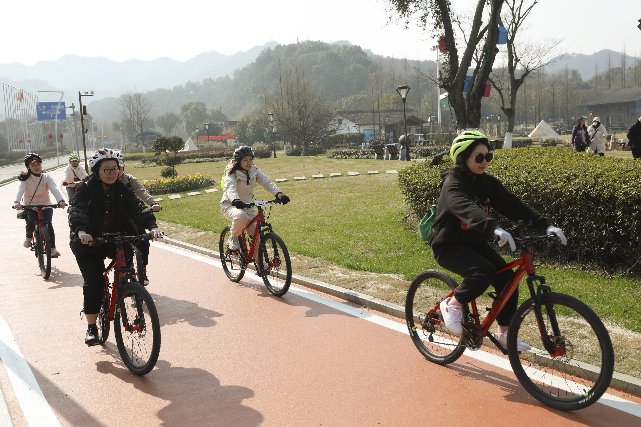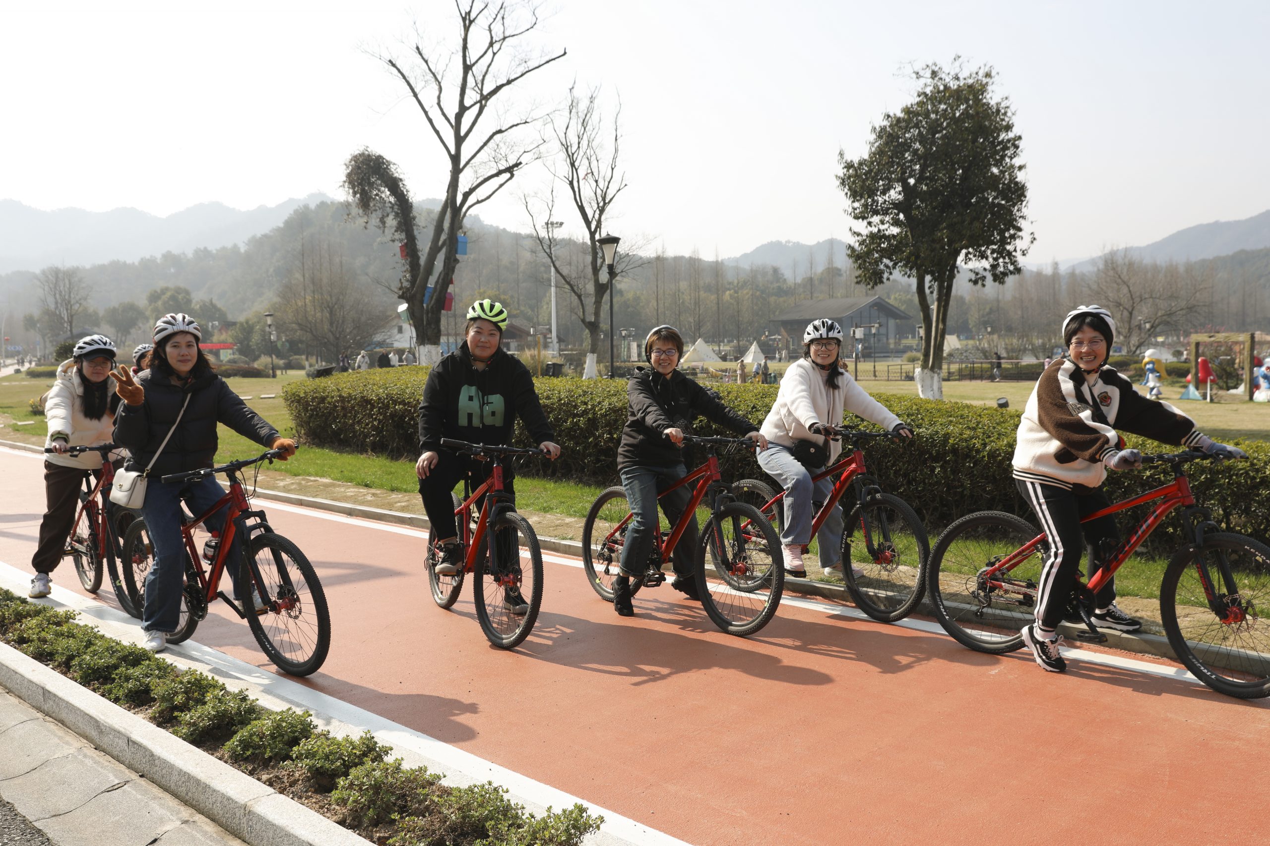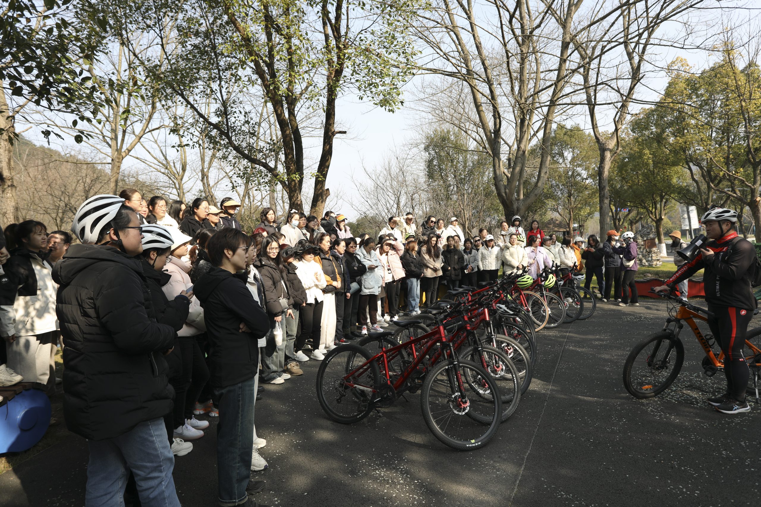 ? ? ? ?活動(dòng)當(dāng)天陽(yáng)光明媚,東錢(qián)湖風(fēng)光旖旎,湖光山色連成景,人在景中,景在畫(huà)中。早上9點(diǎn),女職工們?cè)隈R山濕地騎行驛站集合,帶上騎行頭盔,聽(tīng)教練講解后依次出發(fā)。