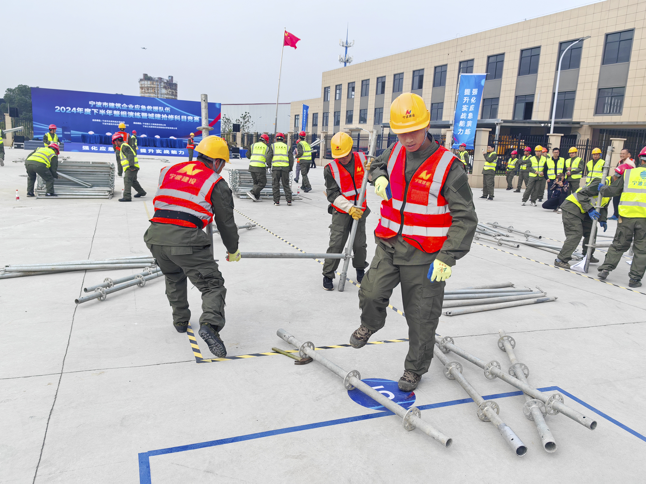 ? ? ? ?為進(jìn)一步加強(qiáng)提升寧波市建筑企業(yè)應(yīng)急隊(duì)伍專業(yè)技能和實(shí)戰(zhàn)能力,11月22日,寧波市住房和城鄉(xiāng)建設(shè)局、寧波市建筑市場(chǎng)管理服務(wù)總站組織開展全市建筑企業(yè)應(yīng)急救援隊(duì)伍整組演練暨城建搶修科目競(jìng)賽。包括我公司應(yīng)急救援分隊(duì)在內(nèi)的全市12支建筑企業(yè)應(yīng)急救援隊(duì)伍共計(jì)400余人參加演練。