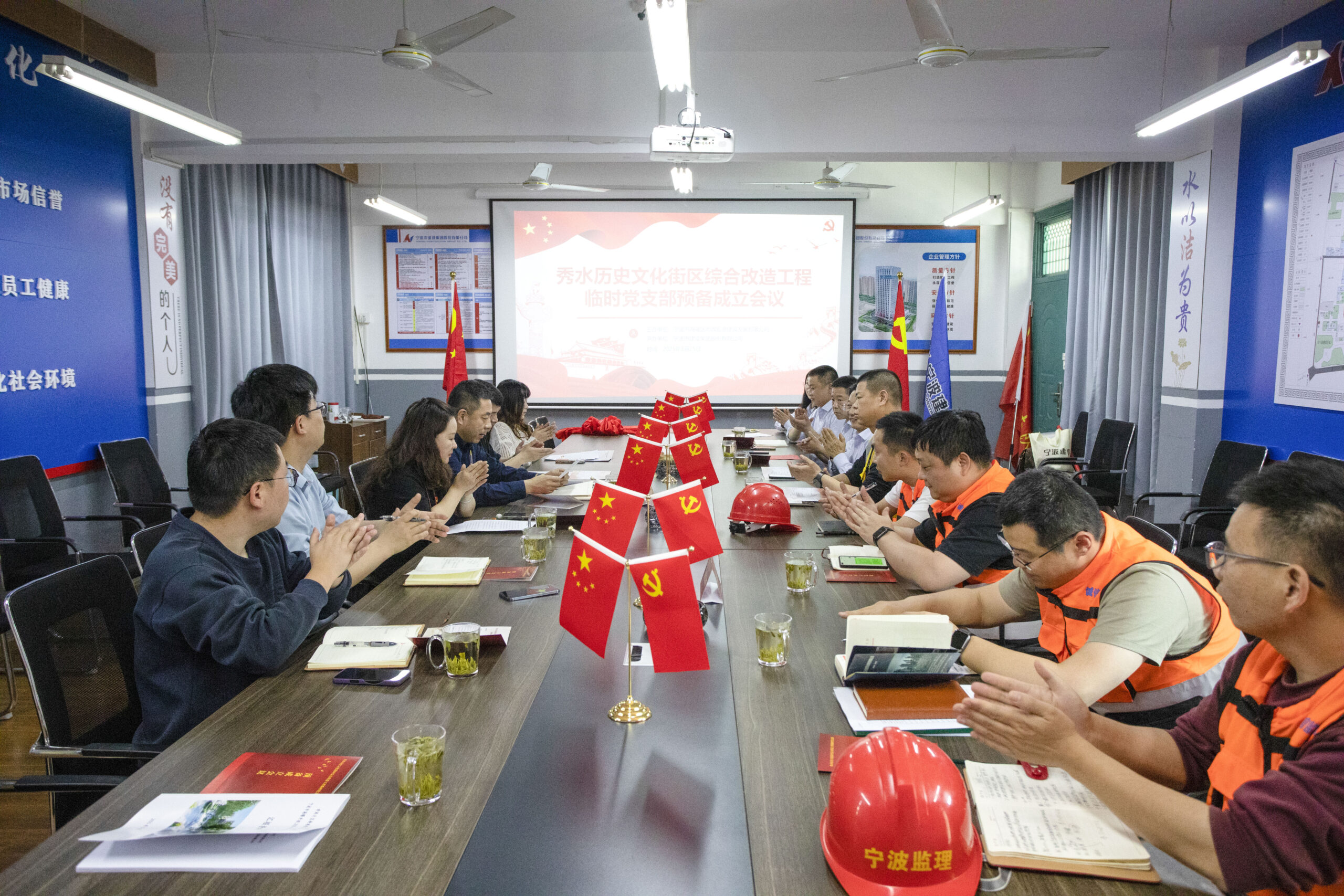 ? ? ? ? 3月25日下午,寧波市海曙區(qū)秀水歷史文化街區(qū)綜合改造工程臨時黨支部預(yù)備成立會議在項目部會議室隆重舉行。海欣控股集團黨委委員、紀(jì)委書記、婦聯(lián)主席傅平南,下屬市政公司黨支部書記、總經(jīng)理劉春暉,寧波建設(shè)集團工會主席苗志春,寧波建設(shè)集團市政分公司工會主席卞鐵勇等出席本次會議。
