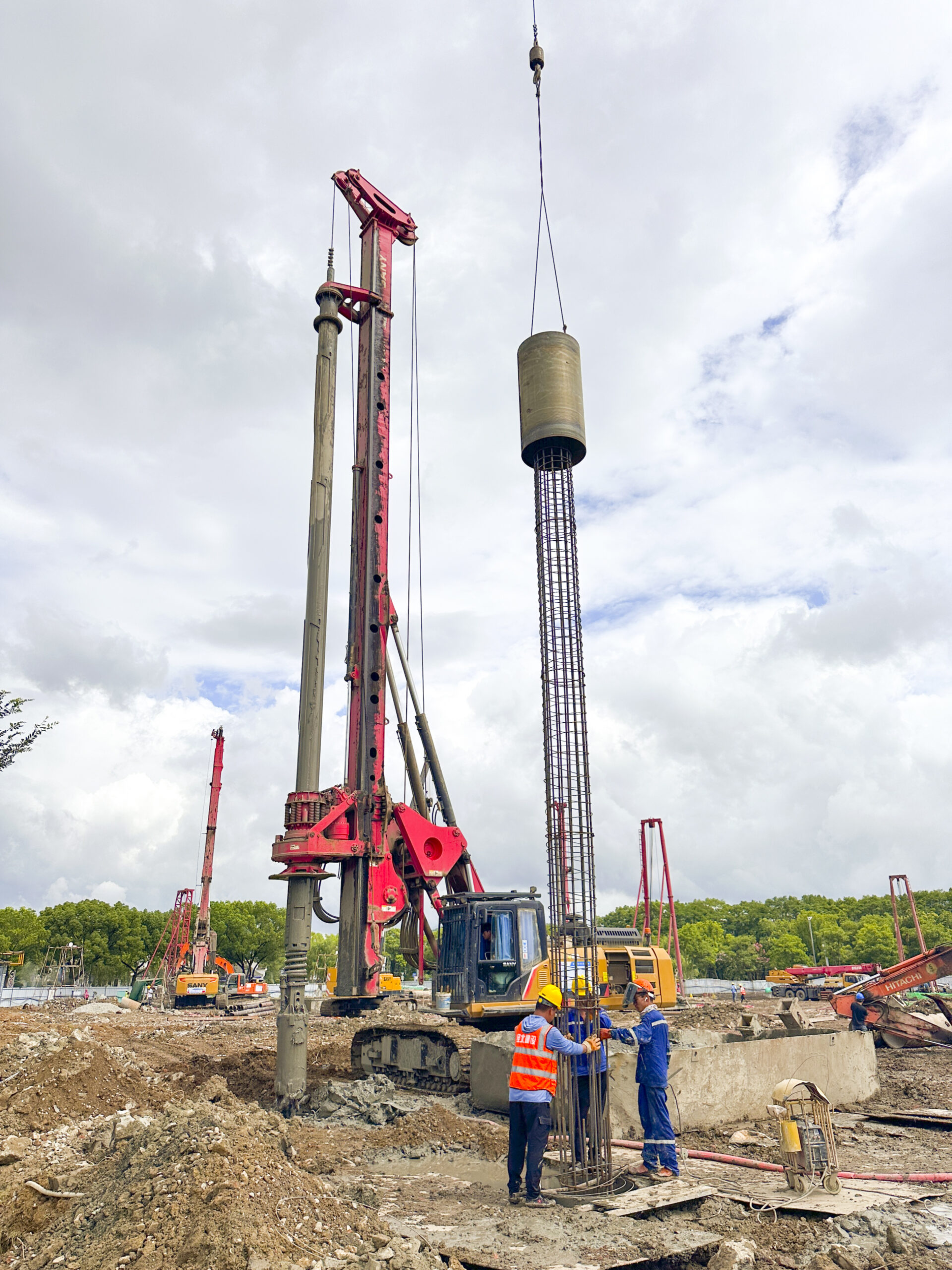 ? ? ? 為確保項目優(yōu)質(zhì)高效推進,機施分公司組建了由資深技術(shù)骨干領(lǐng)銜的專業(yè)項目管理團隊,并制定科學(xué)合理的施工方案。施工過程中采用先進的旋挖機施工技術(shù),該設(shè)備作為多功能、高效率的灌注樁成孔裝備,兼具桅桿垂直自動調(diào)節(jié)與鉆孔深度精準(zhǔn)計量功能,通過鉆斗旋轉(zhuǎn)鉆進、提升卸渣的循環(huán)作業(yè)模式,有效保障施工效率與工程質(zhì)量。針對巖石層施工難點,分公司運用成熟的加壓鉆進工藝,依托設(shè)備的高扭矩性能驅(qū)動鉆頭合金齒切入巖層實施破碎,此項技術(shù)方案集中呈現(xiàn)了分公司在復(fù)雜地質(zhì)條件下積累的施工經(jīng)驗。