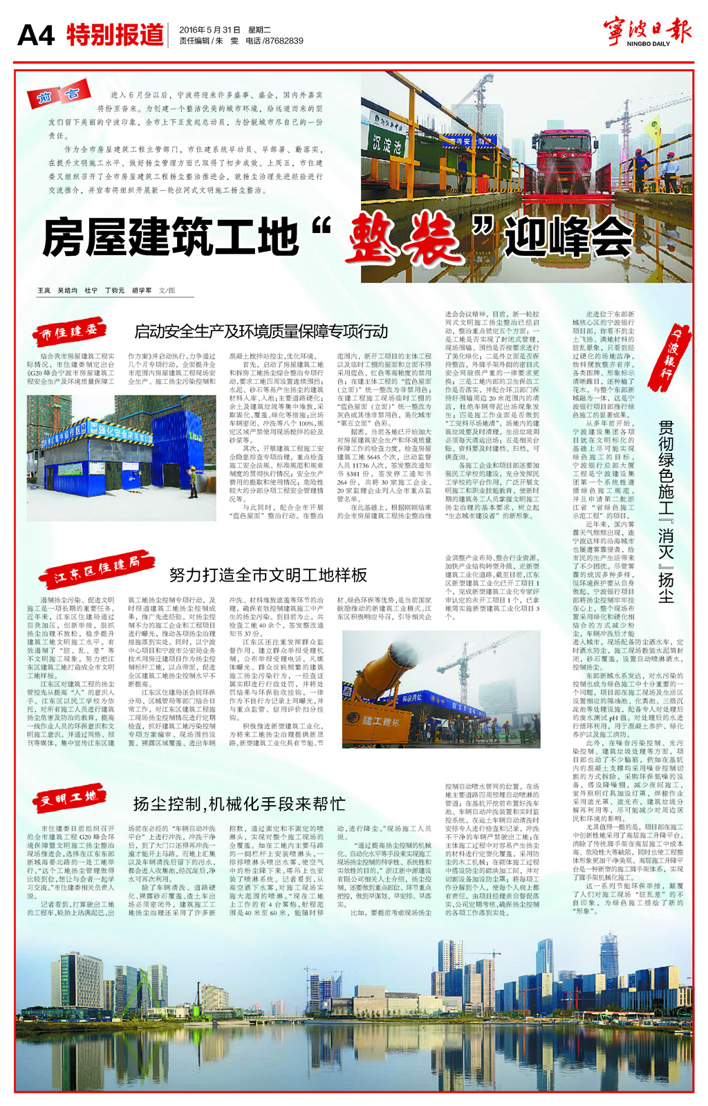 《寧波日報》2016.05.31.A4版:房屋建筑工地“整裝”迎峰會